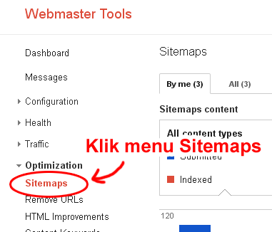 - Jika sudah mencapai lebih dari 500 posting, maka masukkan juga Sitemap berikut ini : atom.xml?redirect=false&start-index=501&max-results=500